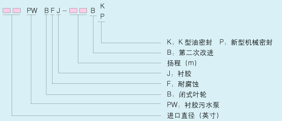 PW-BFJ型系列耐磨耐腐耐温衬胶污水泵,其过流部分采用进口橡胶高温硫化模压成型,具有良好的耐磨耐腐耐温性能。整体结构简单、运转平稳、噪声低,泵密封采用机械密封及新型K型骨架油密封装置,解决了泵的泄漏问题,是现代环保领域较理想的节能泵。实践证明:可取代其它的普通型防腐型污水泵,其运行成本低、使用寿命长,是当今污水泵中的佼佼者。